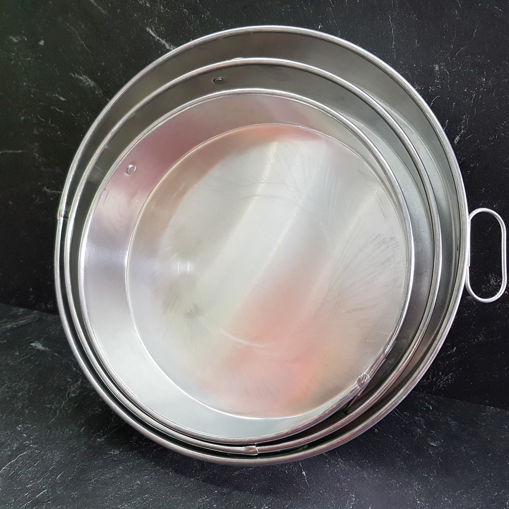 10 in, 25.40 cm ; Bahan tebal, tidak gampang baret. 9 in, 22.86 cm ; Loyang bulat 8 inch pengganti ukuran . 8 in, 20.32 cm ;